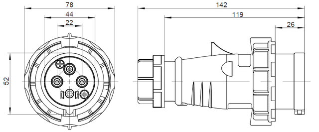 Вилка кабельная 16A/400V/3P+E/IP67